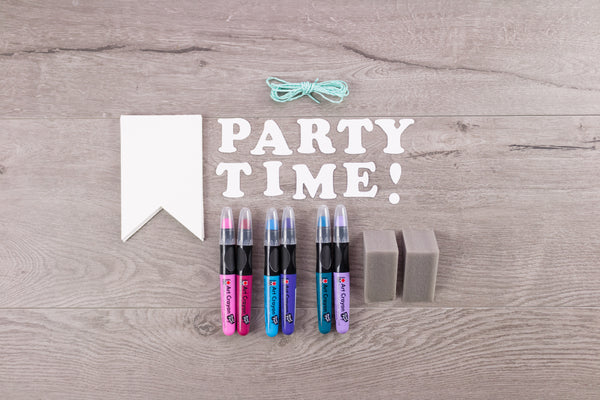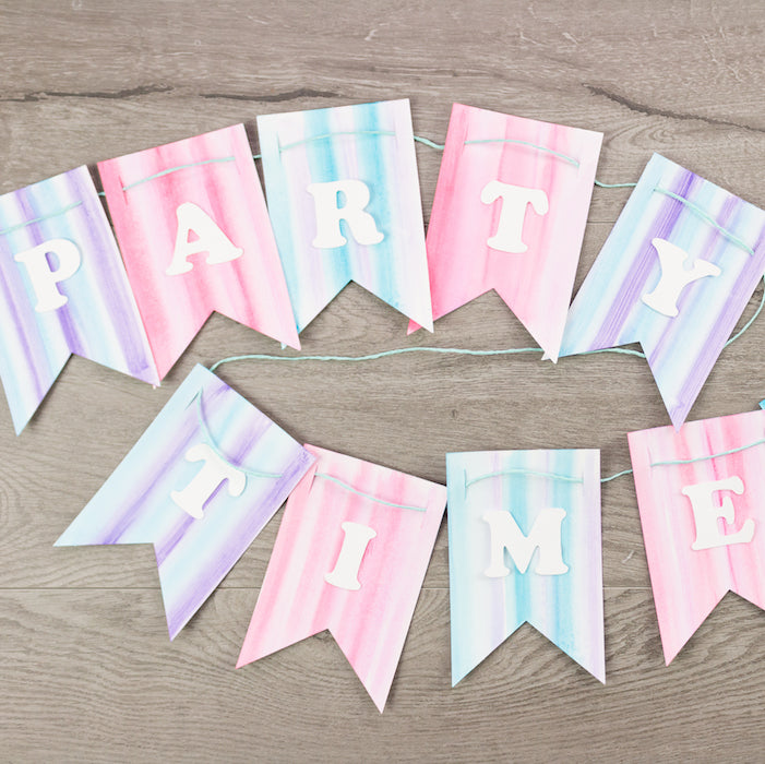 Marabu Creative Art Crayons are the perfect tool to create beautiful watercolor designs! We kicked off our color adventure by using the Art Crayons to design a watercolor paper flower wall display and decided to expand on the design and add party banner! If you missed the watercolor paper flower technique video you can watch it here!