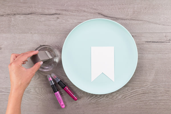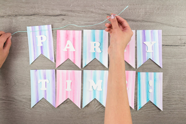 - Cut banner shaped pendants from the watercolor paper. Cut enough pendants to spell out your message.