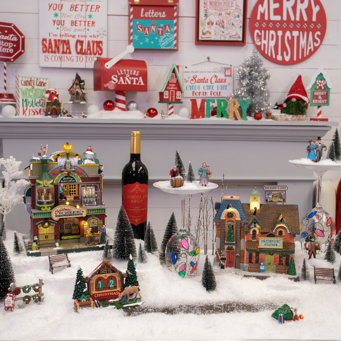 - Use all of your Lemax pieces to put together your DIY wine themed village and add in a few bottles of your favorite wine.