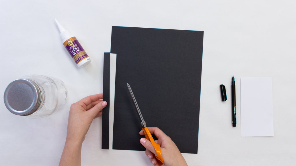 - Cut a piece of black paper to create a wrap around your jar. Adjust the width based on the size of the jar.