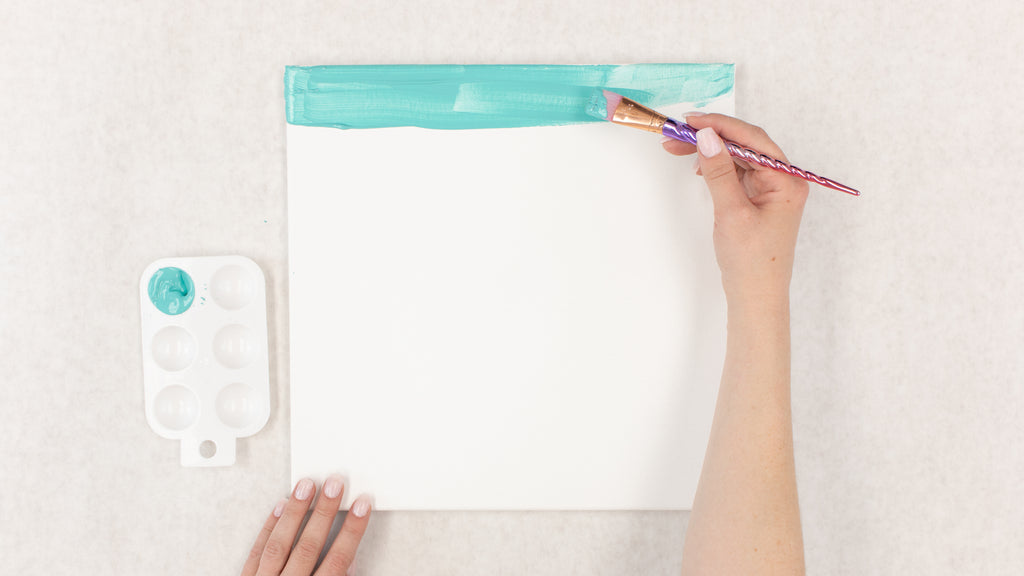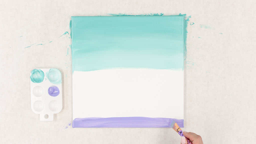 - Flip the canvas around and paint a block of the Aromatherapy. Add Marshmallow to the Aromatherapy to create a lighter shade and paint across the canvas. Keep adding Marshmallow and painting on the canvas, blending as you go.