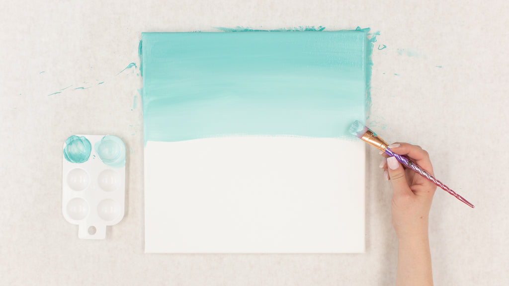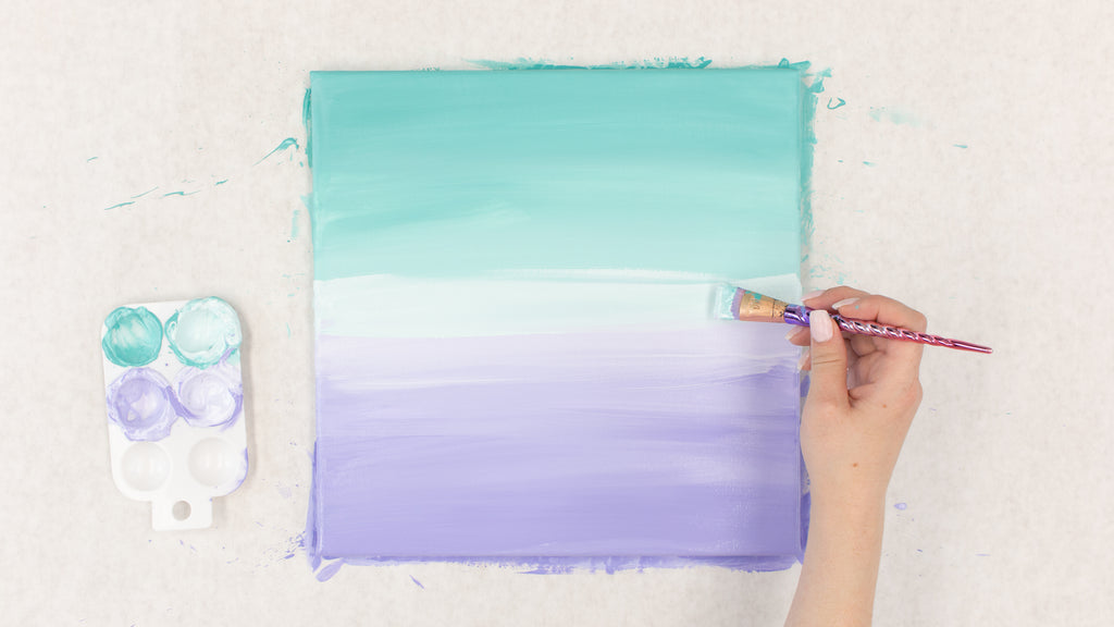 - When the colors meet in the middle of the canvas, blend together. Set aside.
