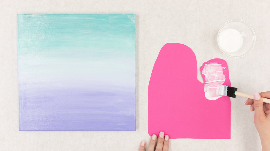- While the canvas is still wet, spread decoupage on the back of the pink cardstock paper and place it on the canvas.