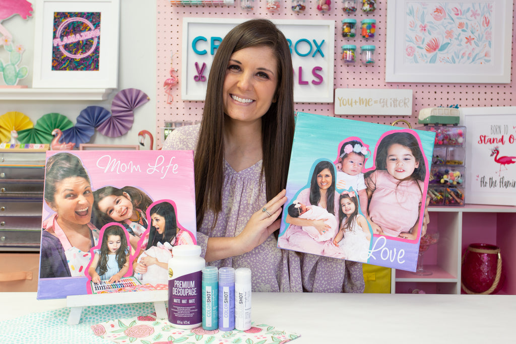 Photo crafts are my absolute favorite projects. I love being able to look back at all my amazing family memories and share those memories through creative gifts! I’m so blessed to have such an amazing mom, and to be a mom to my two beautiful girls. For this Mother’s Day, I wanted to create something personal, colorful, and crafty. And since my mom is always asking for pictures of the kids, I thought why not think out of the box for picture gifts?