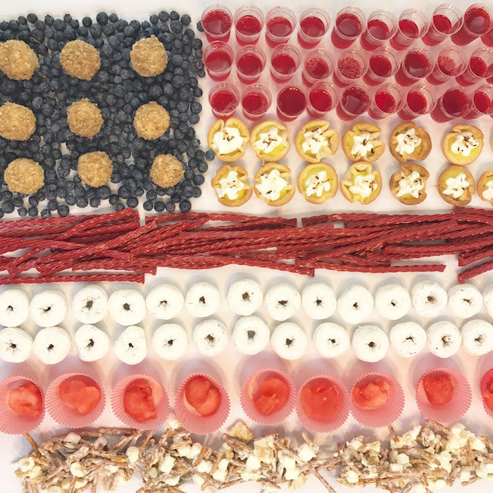 Summer holidays are the perfect excuse to play with your food and create fun displays! My latest creation is an edible American flag party display. Made with simple foods that everyone at your Summer party can enjoy!