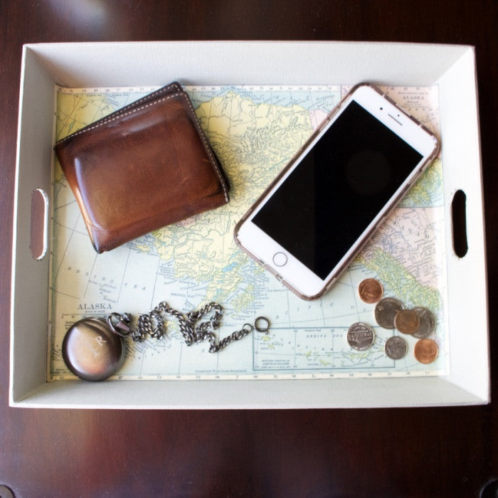 I can't believe it's June already! Father's Day is almost here and sometimes, finding the perfect gift for dad can be challenging for the man who has everything. This year, I decided to make my dad a sentimental catchall tray lined with a map of his favorite place to visit, Alaska. Alaska holds a very special place in both our hearts! In fact, we are heading out there again later this year for a little fly fishing and quality time.