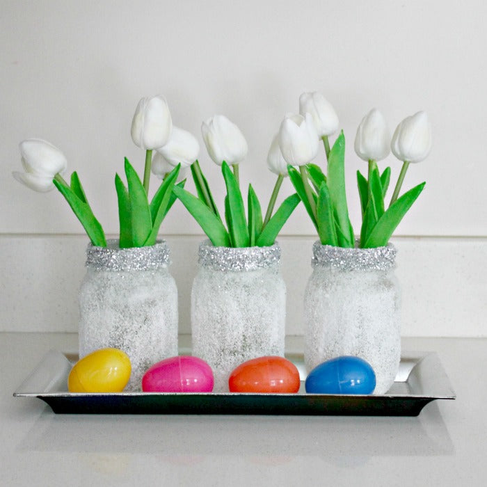 6. Let the glue dry and use these Epsom salt luminaries as part of your Easter centerpiece. This is a fun craft that even younger children can help.