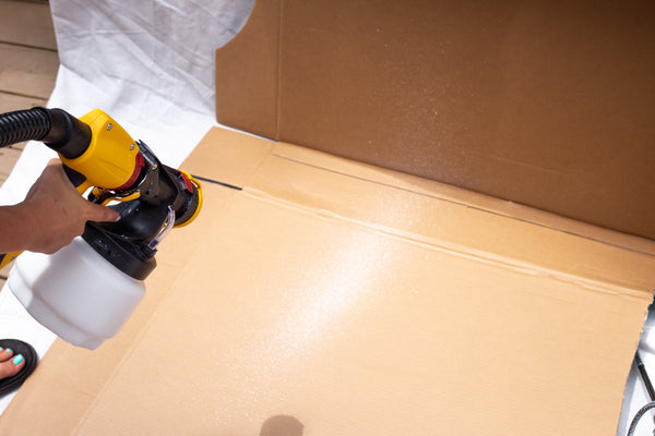 - Once the FLEXiO 4000 is assembled, practice spraying to get the hang of the flow and motions. A practice sheet is included. I used this for a previous project. Even though I have the hang of how to use the sprayer I always practice on a box or scrap sheet to ensure the paint is flowing and I have the motions correct.
