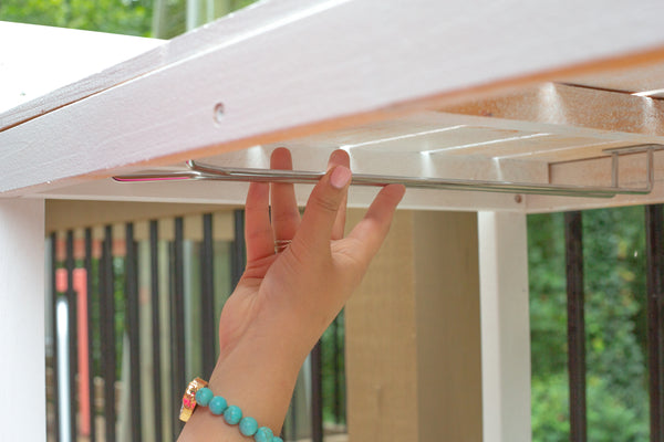 - Attach the wine racks under the table. If the table top is too thin like mine, use industrial glue instead of screws to attach and let it completely dry before using.