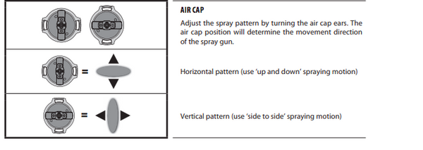 - For coating, large surfaces use a high air power and material flow.
