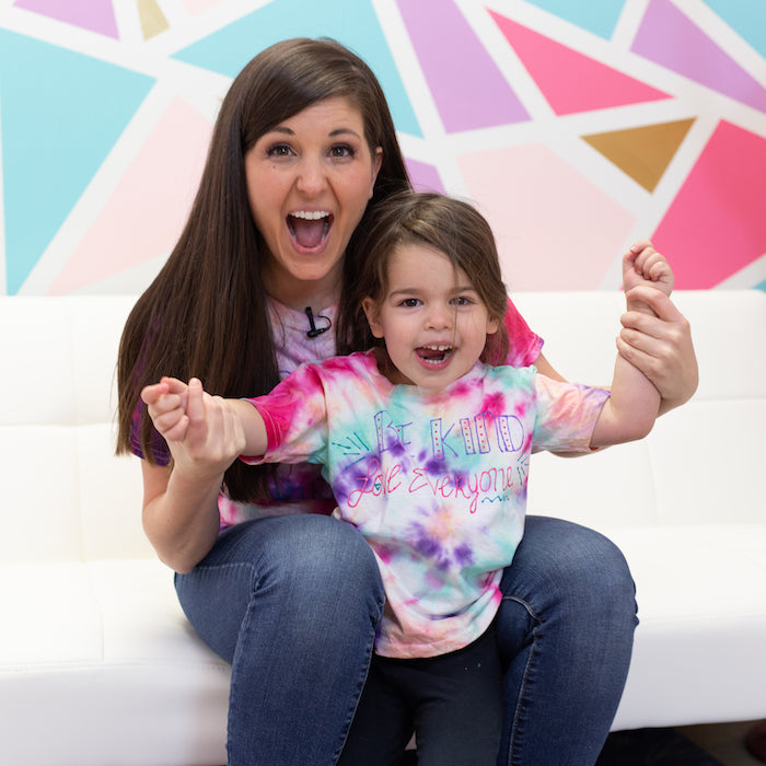 We love tie dye as a family. This past year I have created a Tie Dye Hippie Family Costume, Matching Christmas Tie Dye PJs and the Mommy and Me Tie Dye Patriotic Dresses. It is such a fun and easy craft. My daughter Lily joined me for my latest tie dye project. We created colorful kindness shirts to remind her and the world to be kind and love everyone! As a parent my number one goal is to raise kind humans and these shirts are fun reminder. For today's project we are using the Tulip 2 Minute Tie Dye Kit.