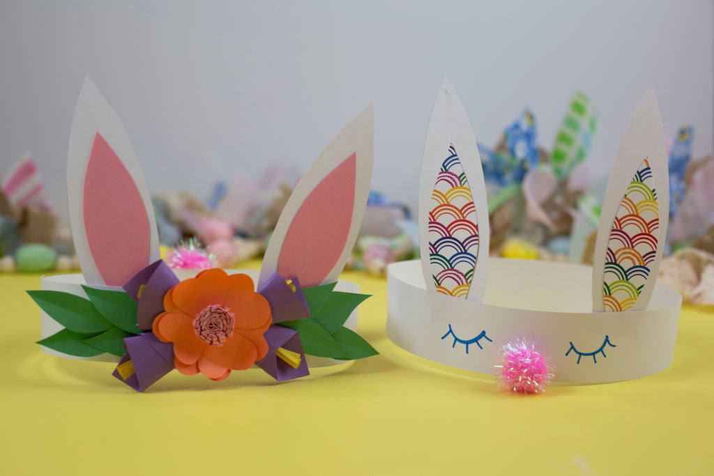 If you want to make the flower crown bunny ears. Cut out the heart and the corner round to make the flowers. Refer to the video for instructions on how to make the flowers or read the flower arrangement tutorial below. Once your flowers are made glue them to the front of the headband.