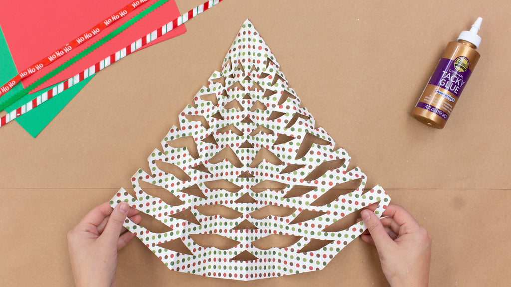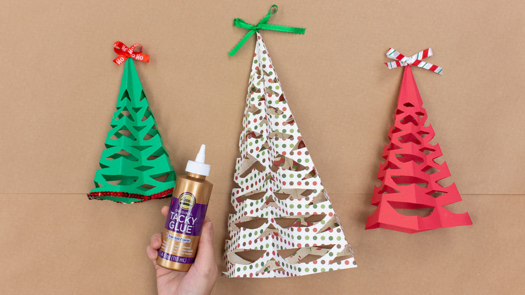 Light up the holidays with an easy paper craft that is fun for the whole family. Cut and create paper trees in minutes to create perfect table or fireplace decoration. Hold it all together with Aleene's Original Tacky Glue! Once you get the hang of folding and cutting these trees you can experiment with cut sizes and shapes!