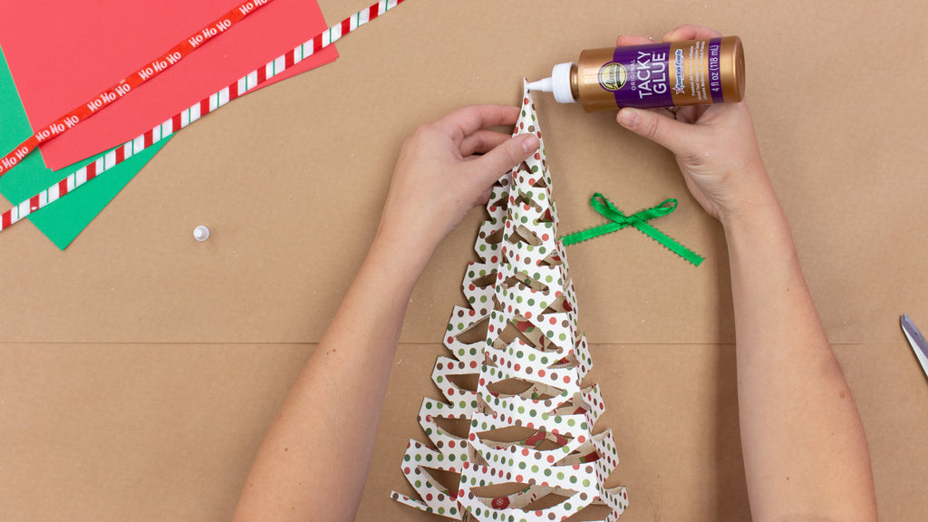 - Use the Aleene's Original Tacky Glue to glue the edges together to form the tree. It will stand up on its own.