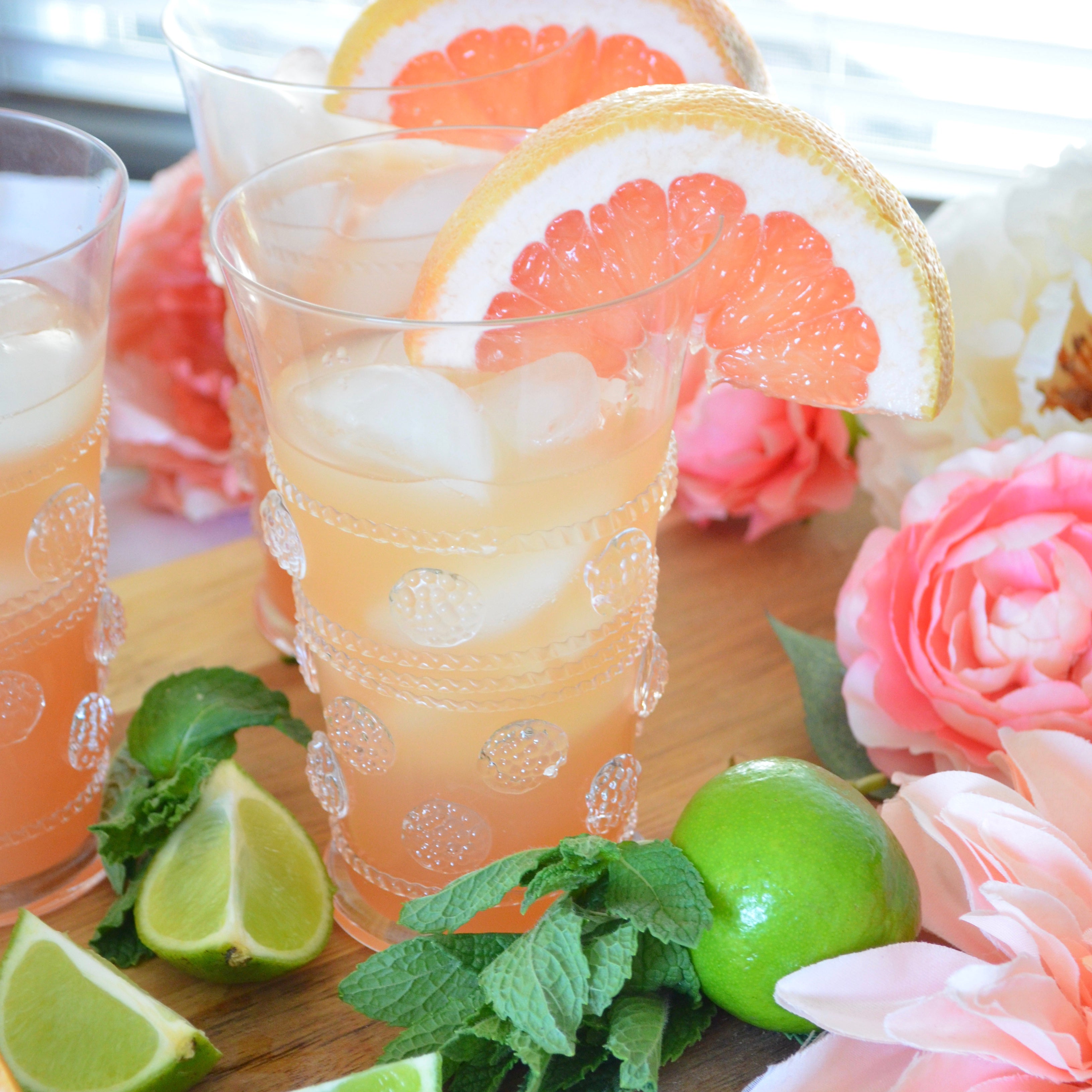 When it comes to cocktails, it is all about balance. I prefer a drink that has brightness and flavor rather than a drink that is extremely sweet. I have created what I like to call “Pretty in Pink Grapefruit” cocktail, because it looks so fancy you will feel pretty sipping on it. It has a tart and acidic bite from the grapefruit which I mellow out a bit with a mint simple syrup. I like to squeeze in some fresh lime juice for brightness, and then finish it off with sparkling water to make it refreshing and sparkly. Good quality tequila is my alcohol of choice for this one, but if you have vodka around, that works too.