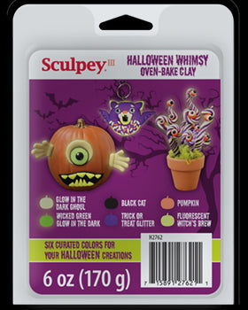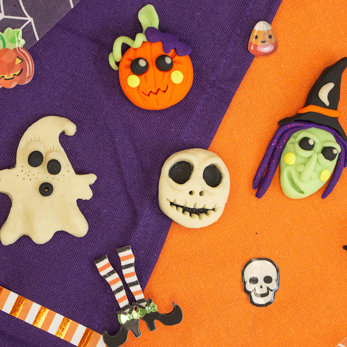 Halloween is one of my favorite holidays and as Lily gets older I am so excited for her to enjoy dressing up and trick or treating but I would be lying if I said that walking in the street at night doesn't give me heart palpitations. Safety is one of my biggest concerns so I started thinking about how I could add a little extra safety to kids Halloween costumes and I immediately thought of my favorite oven-bake clay, Sculpey! They just released a brand new Halloween pack that includes glow-in-the-dark! Check out how easy it is to make your very own not-so-spooky fun Halloween pins. They are so easy to pop on the kiddos right before trick or treat. I even clipped one on Lily's bow!
