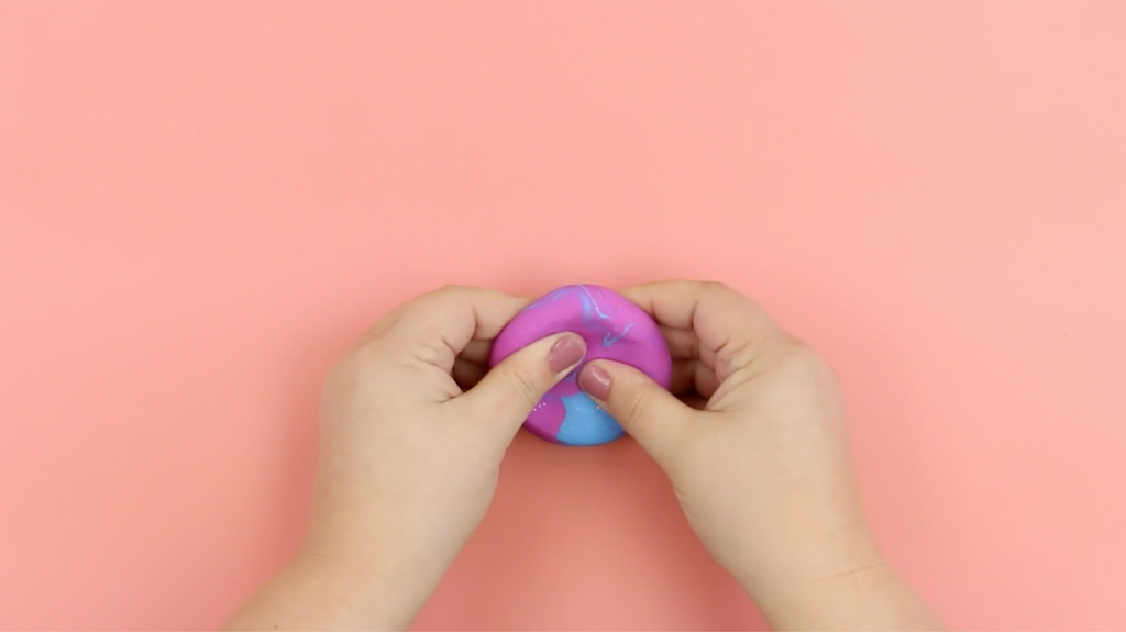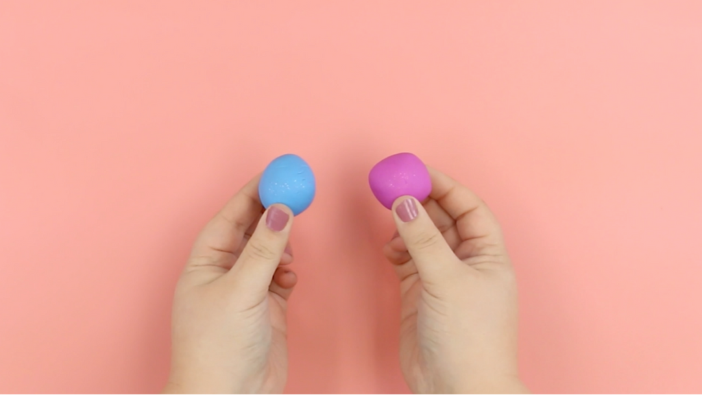- Using the blue and violet glitter Sculpey III, make two, separate medium-sized balls.