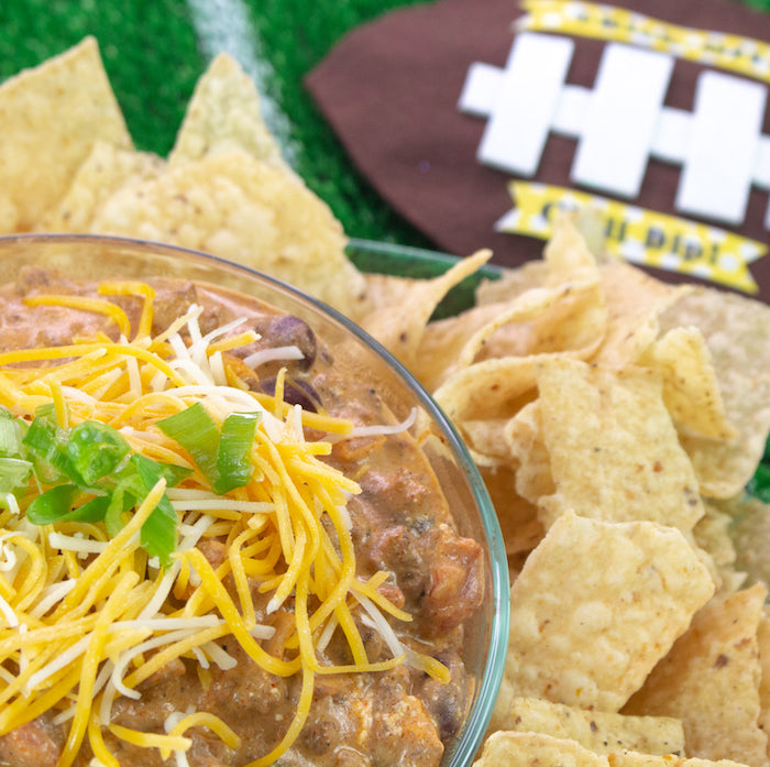 Is anyone else as excited as me for football kick off!!! Lily has her cheerleader outfit and I'm working on yummy eats! So far Tailgate Chili Dip made with Georgia Beef is a win (it is easy and quick- double win)! Watch below and get ready to be hungry! I listed all the ingredients below the video!