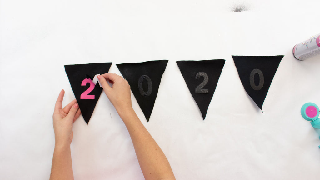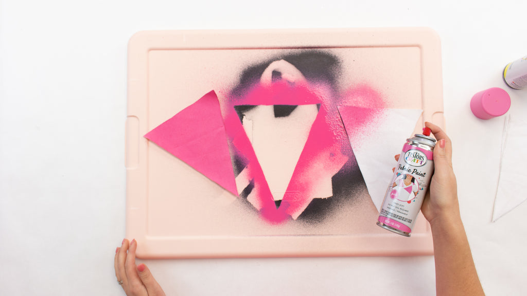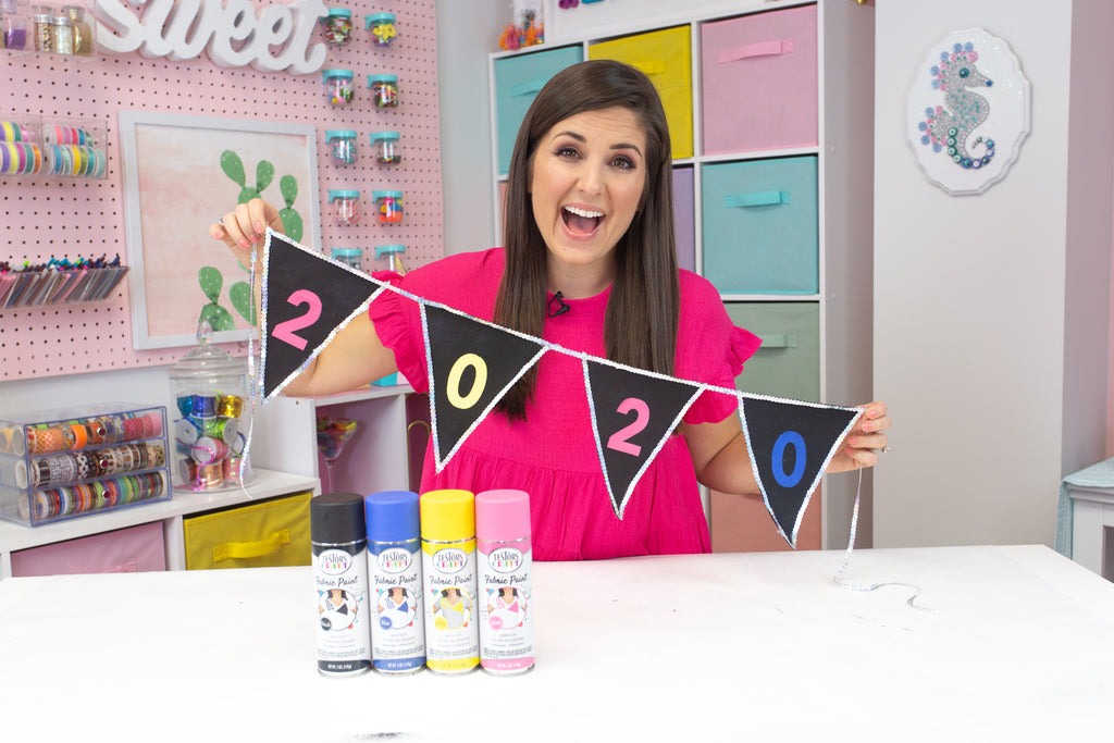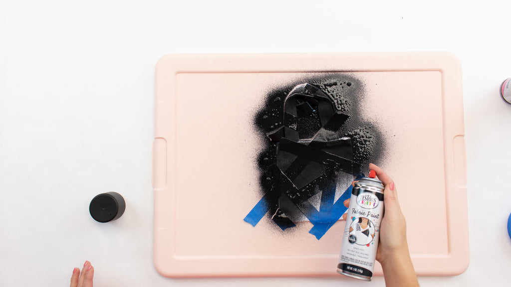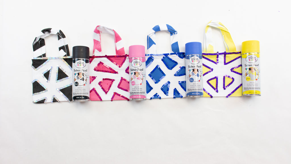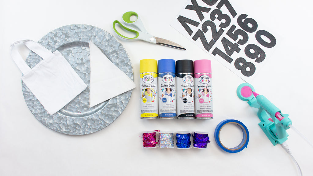New Years' Eve colors are traditionally black, gold and silver. I love shaking up tradition so I decided to add pops of bright colors! Since I was working with fabric projects I selected Testors Craft Fabric Paint. It is an aerosol spray, that is permanent, washable and does not require heat setting!