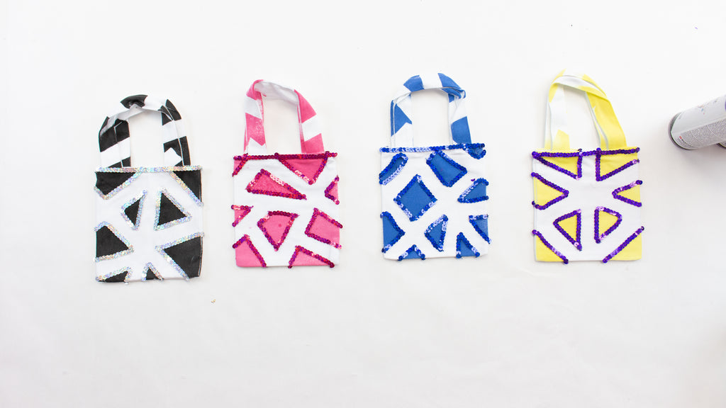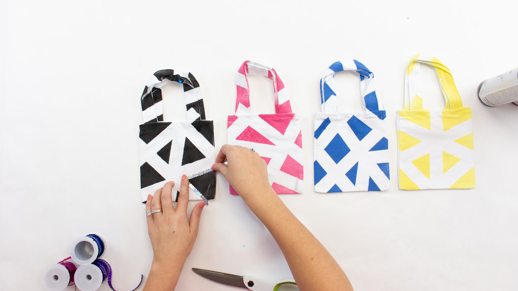 - You can leave it as is or if you like to be a little extra like me you can trim the shapes with sequins. Use a detailed point hot glue gun or fabric glue to attach the sequin trim.