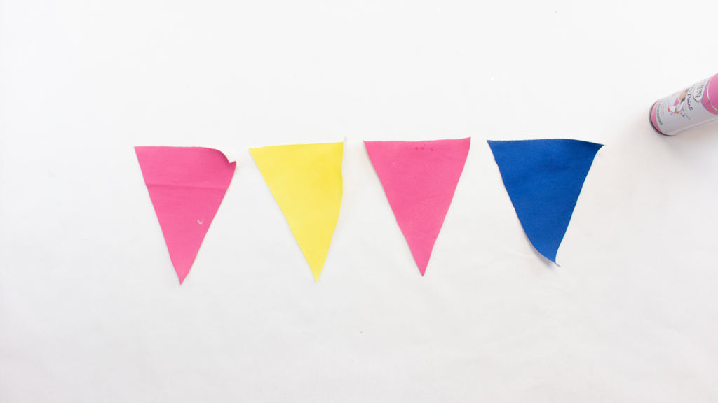 - Use hot glue or fabric glue to trim the banners with silver sequins. I used one long strand of sequins to attach all the pendants.