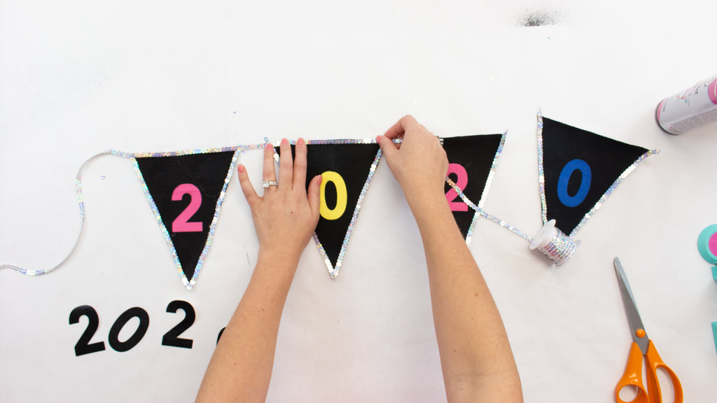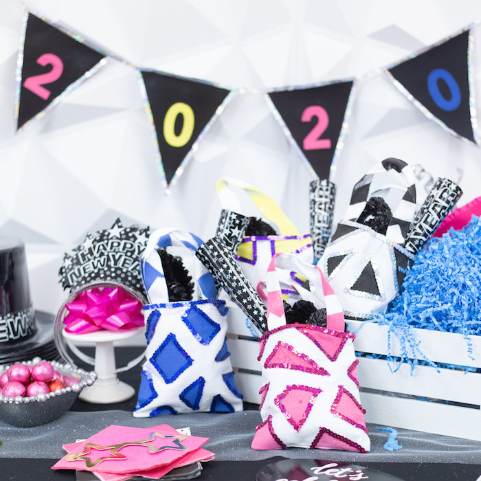 I blinked and the year is almost over! I can't believe I am already thinking about New Years' Eve celebrations! Brennan and I have had so many amazing New Year's Eve celebrations traveling and even with small gatherings in our home with a close group of friends. This year we decided we needed a little mom and dad getaway so we recruited some of our favorite couples to travel with and we are headed to New Orleans to ring in the new year. Instead of going to a big party we are going to do a fancy dinner and a small celebration before dinner. When Testors asked me to host a New Year's Eve themed Crafternoons I thought this was the perfect opportunity to create small favor bags filled with party favors and banner that I can set up to kick off the celebrations before dinner!