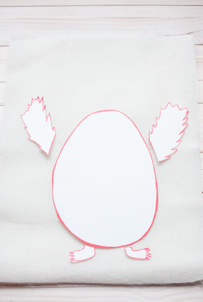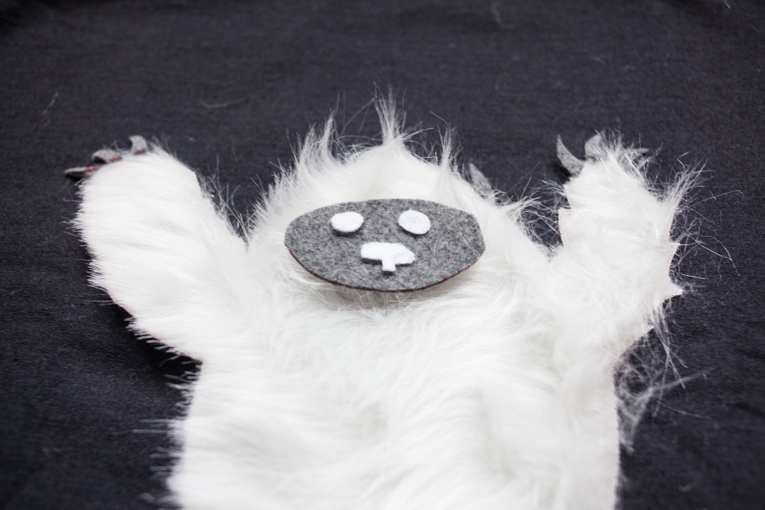 1. Use the template to trace the snowman on the back of the faux fur with a marker.